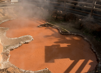 - Hot spring that contains total iron ion(Fre++ or Fe+++) 20 mg/kg or more. It is classified into bicarbonate type and sulfate types depending on the anion.