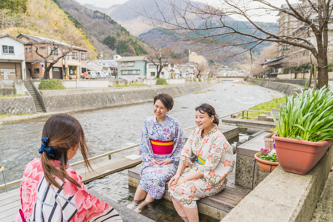 また、温泉街には、無料で楽しめる3か所の足湯「あんべ湯」「もっけ湯」「もっしぇ湯」が点在し、足湯カフェやばら園の休憩施設などが整備され、官民一体となった「そぞろ歩きの楽しい温泉街」を目指しています。